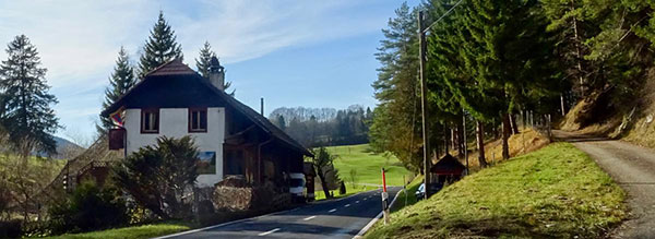 Ensuite, il y a la maison de M. Gloor, qui est bâtie au cœur de l’ancien village, à l’emplacement de l’ancienne église, du cimetière et de la cure. On sait qu’en creusant les caves, des ossements avaient été retrouvés. Le ruisseau qui s’écoule de la petite vallée latérale s’appelle « l’Ave-Chiré », « l’Eau-Tchiré » ou l’eau du curé. En face, le long de la rive droite, le lopin de terre est dénommé l’Oeuche au Prêtre ». Dans l’ancien cimetière, l’ancienne propriétaire, feu Madame Ella Schumann-Juillerat avait retrouvé une ancienne pièce de monnaie assez bien conservée et portant la date de 1513, avec la double aigle impériale.